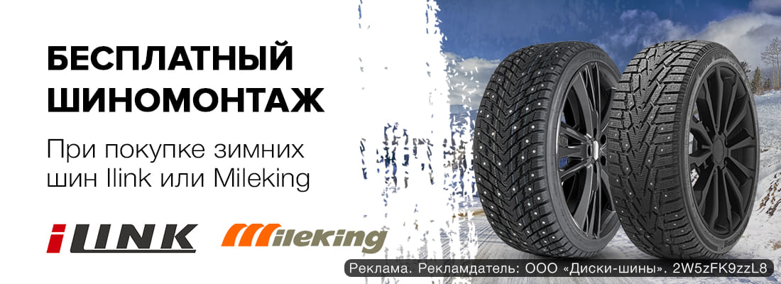 Получите БЕСПЛАТНЫЙ ШИНОМОНТАЖ за покупки зимних шин бренда Ilink или Mileking.