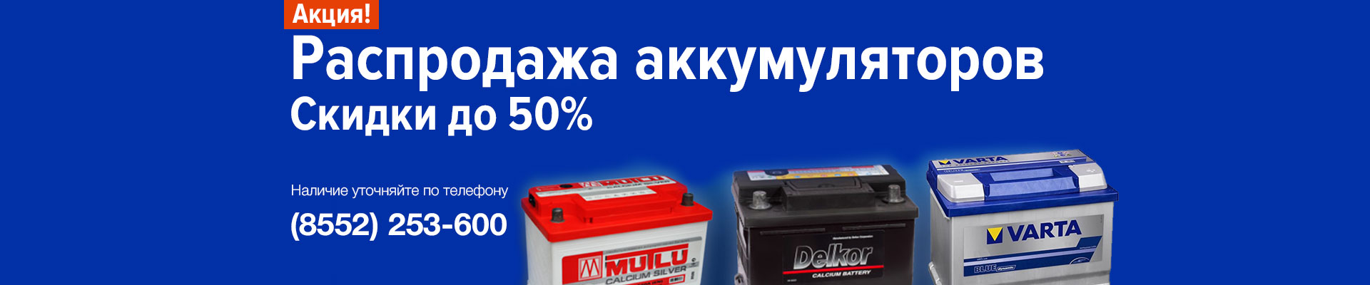 Уникальное антикризисное решение – распродажа аккумуляторов со скидкой до 50%! В распродаже участвуют более 100 видов АКБ для грузовых, легковых автомобилей и спецтехники.