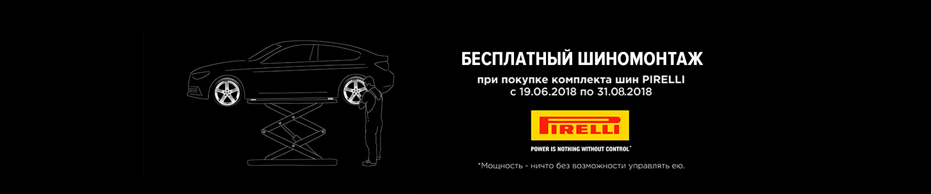 С 19 июня по 31 августа 2018 года при покупке комплекта летних шин Pirelli – скидка на шиномонтаж в подарок.